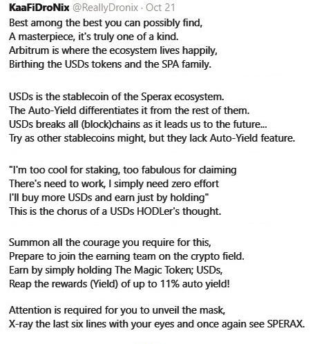 Earn 11% APY with Sperax USDs Auto-yield mechanism by Shelleymaeph: 50000 SPA
